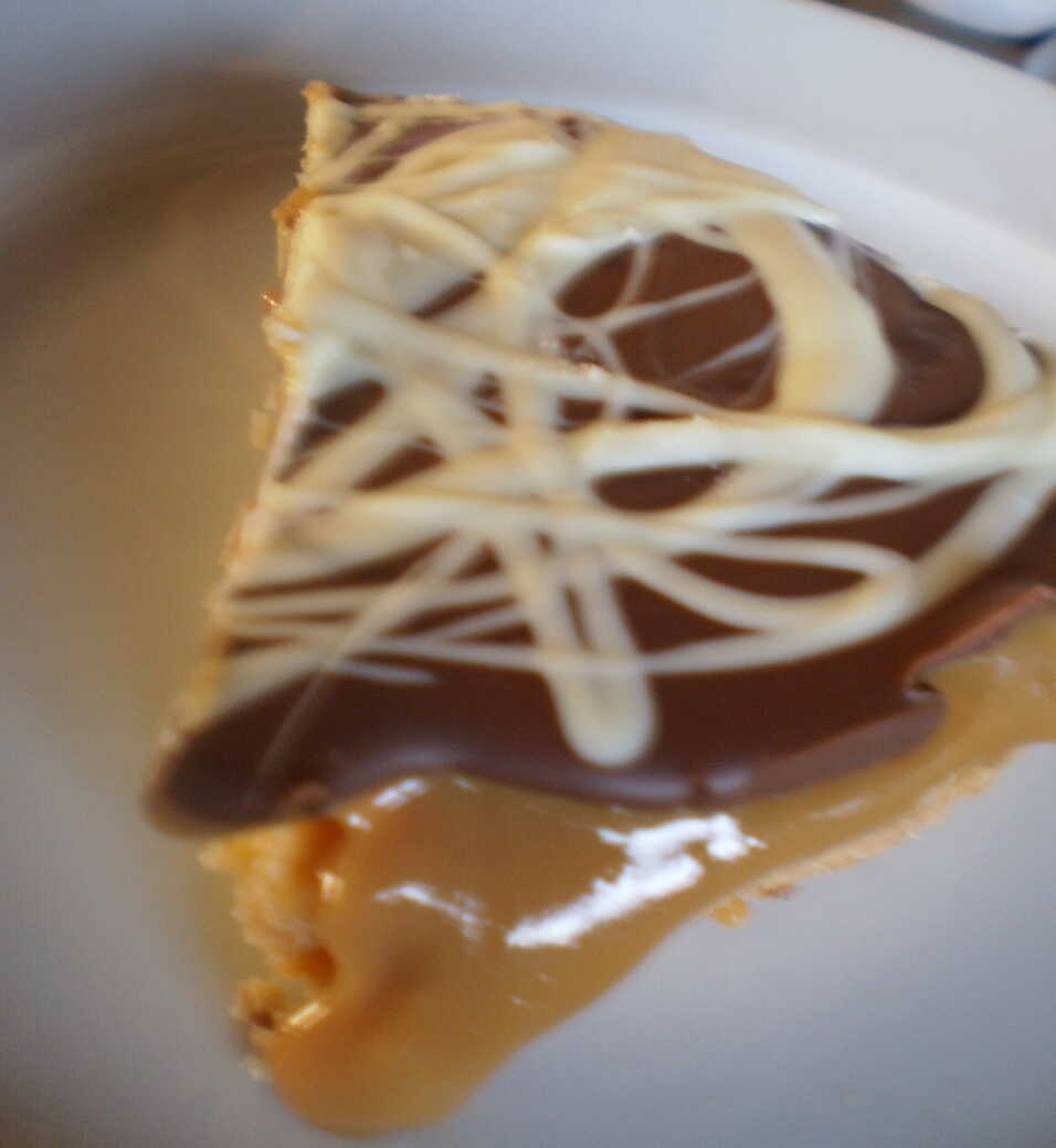 - When the base is cool pour the caramel over the base spreading evenly and pop in the fridge. The caramel won’t set completely but will harden slightly.